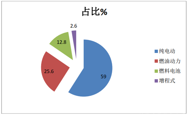 參展車型按技術(shù)路線劃分,有23款純電動客車參展,占比為59%,是這次參展車型的主體部分,主要含純電動城市客車、純電動商務(wù)車等(其中比亞迪和金旅最多均為4款);燃油類有10款參展,占比25.64%,主要含旅游客車、城間客車等(其中福田歐輝、安凱客車、海格客車、北方客車均為2款,并列第一);燃料電池客車有5款車型參展,占比為12.8%(不含曉蘭客車1款燃料電池清洗車,包括宇通、福田、中車及中通、曉蘭客車各1款燃料電池客車),還有1款增程式客車參展(曉蘭客車1款),占比2.6%。