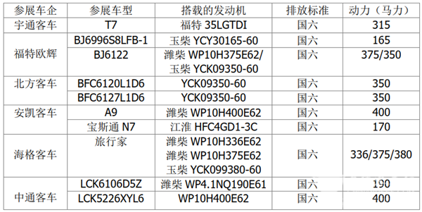 根據(jù)中國客車網(wǎng)統(tǒng)計,本次參展的10款燃油動力車型具體搭載的發(fā)動機如下: